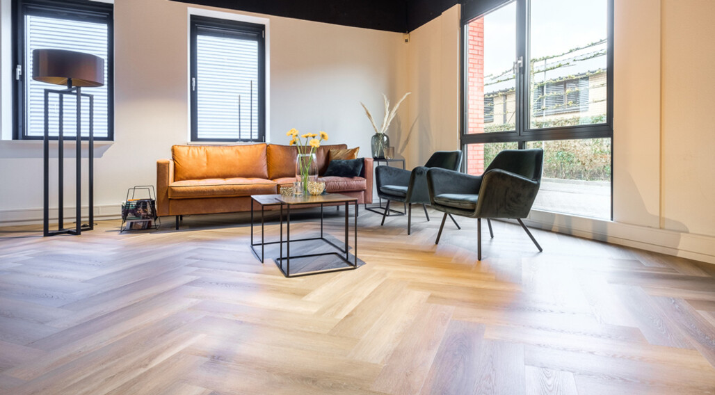 Attico Dryback (plak‑PVC) Ga je voor het strakste en meest professionele eindresultaat, kies dan de dryback‑variant. Deze wordt verlijmd op een perfect geëgaliseerde ondergrond. Het resultaat: een supervlak, stil vloeroppervlak met optimale warmtedoorlaat — ideaal bij vloerverwarming. Bij patroonvloeren (visgraat/walvisgraat) komt het lijnenspel nóg mooier uit en blijven de stroken muurvast op hun plek. Tip: laat egaliseren en verlijmen bij voorkeur doen door een vakman voor het mooiste lijnbeeld.