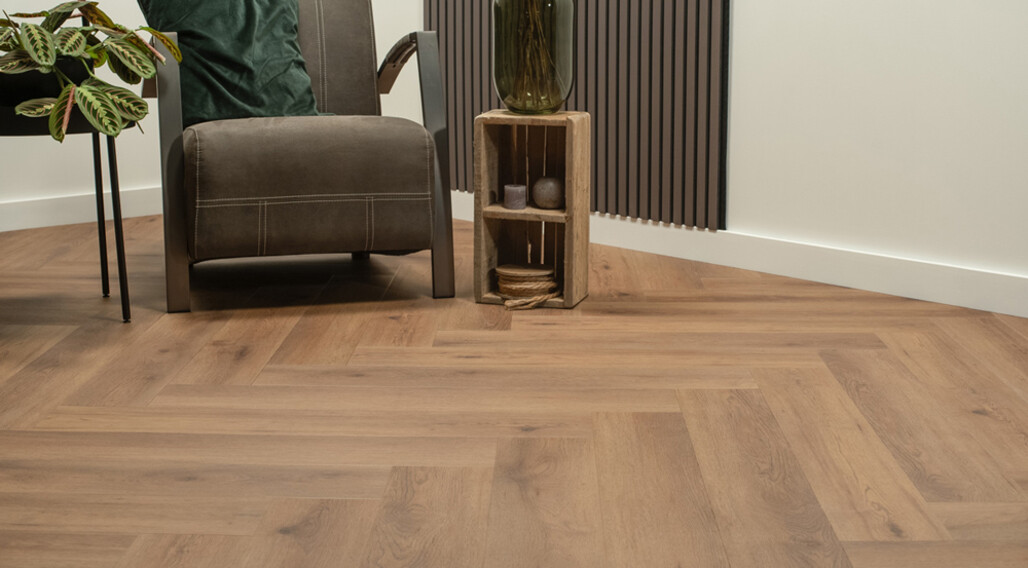 Doordat Floer werkt met een matte toplaag en rijke houtdetails, voelt de vloer warm en echt aan, zonder de nadelen van een houten vloer. Walvisgraat is dé trend van dit moment: chic, eigentijds en perfect voor wie zijn interieur een hoogwaardige, designwaardige uitstraling wil geven. Dankzij de duurzame slijtlaag en sterke opbouw blijft de vloer ook in drukke huishoudens lang mooi.